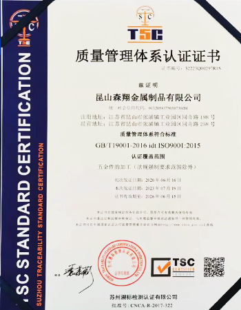 昆山森翔金屬制品有限公司座落于風(fēng)光旖旎、環(huán)境怡人的江蘇省昆山市張浦鎮(zhèn)工業(yè)園區(qū)同舟路258號(hào),廠(chǎng)房占地面積4674.3M2,交通十分便利。